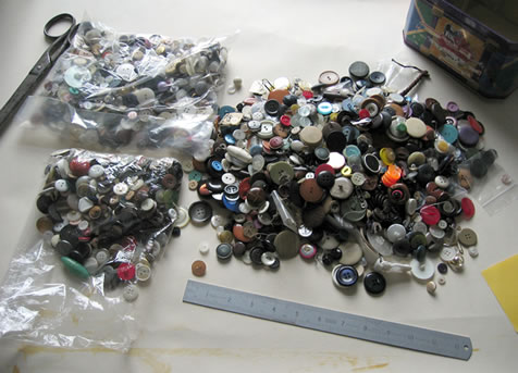 I decided that today would be the day that I would devote to filling out my grant appliction for the 2008-2009 Craft Artists Awards, as the deadline is a week away and there’s a lot to sort out/write/photograph, but it just happens to be the same day that three fabulous packages arrive for me in the post, filled to the brim with gorgeous buttons that need organising and sorting.
