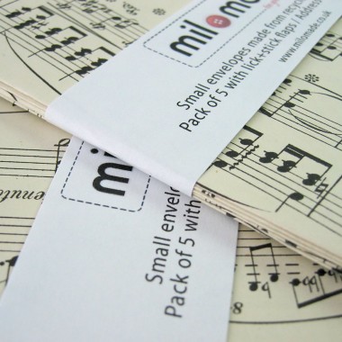 Made from recycled maps and recycled sheet music these envelopes come in packs of 5 with address labels and lick and stick flaps.