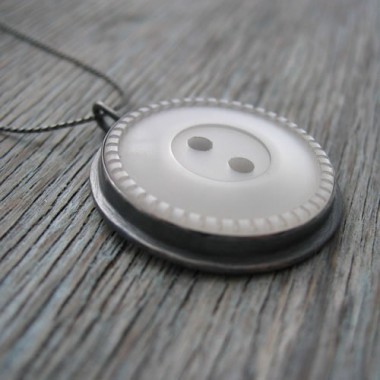 The vintage button pendants stocked by Makers-Online are all unique, one of a kind creations. I love to find distinctive buttons within my collection and these three buttons have wonderful patterns/shapes engraved or punched into them. They are set in antiqued oxidised silver and hung from fine 40cm antiqued chains. They vary slightly in size and price.