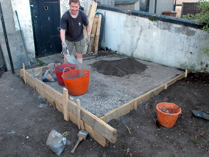 So once the new hole was filled we started on the sand layer, mixing in a little bit of cement as we went a long.