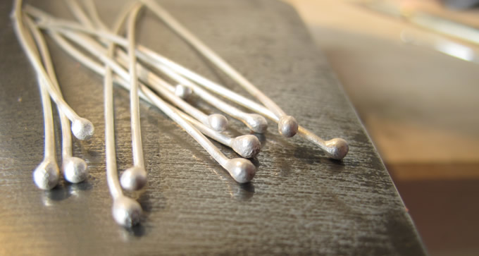 Back in my studio I cut a load of short lengths of silver wire and balled the end of each to make my flower stems: