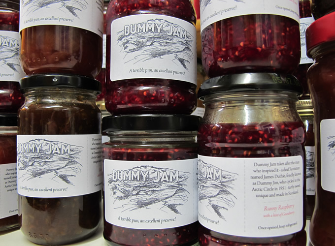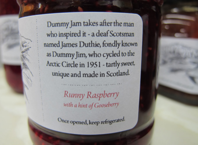 Recently I blogged about making Jam for my friend Matt, for him to sell and raise money for a film he’s making. We’ve named it Dummy Jam as it takes after the man who inspired it – a deaf Scotsman name James Duthie, fondly known as Dummy Jim, who cycled to the Arctic Circle in 1951. It will be on sale at long last this weekend at the Doune the Rabbit Hole Festival and I’ve just designed the labels and printed them out.