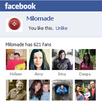 I think it’s imperative to create a good Avatar, for your personal profile and also for your business page. As I don’t use Facebook on a personal level and only for business, I decided that both my avatars would be Milomade related. So on my personal profile I’ve created an avatar that is a medley of Milomade goodies. This  image is 200px by 600px and takes up the maximum space available. I tried a similar thing on my Milomade page just now and it looked great, but what I hadn’t taken into consideration was how Facebook crops the image and makes a tiny version of it to place next to any comment you write, so I changed it back to be just my button icon. I’ve been a bit clever and incorporated the Facebook page background as I thought that a white square looked a bit ugly.