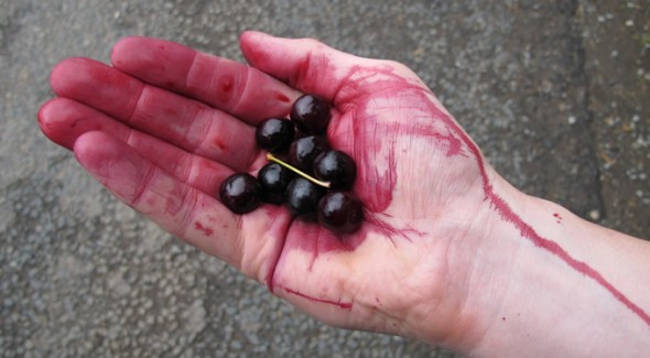 On the way there we stopped off for a short break and found a litle picnic spot with a toilet block and whilst sitting at one of the picnic tables and having a wee snack we noticed that we were surrounded by cherry trees completely laden with fruit. We couldn’t believe our luck. Both red and black cherries. We tasted both and decided the black cherries were the best and so picked a few bagfuls to munch on whilst we continued on our drive.