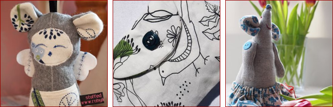 I wanted to buy most of the things I saw yesterday at Kirsty’s, especially some of the applique brooches by Jane Smallcombe – so intricate and for some reason remind me of my eastern european roots. I also wanted to kidnap the grey rabbit doorstop by Clootielugs but didn’t get a chance to stuff it up my jumper without Kirsty noticing. I want it! I want it!!